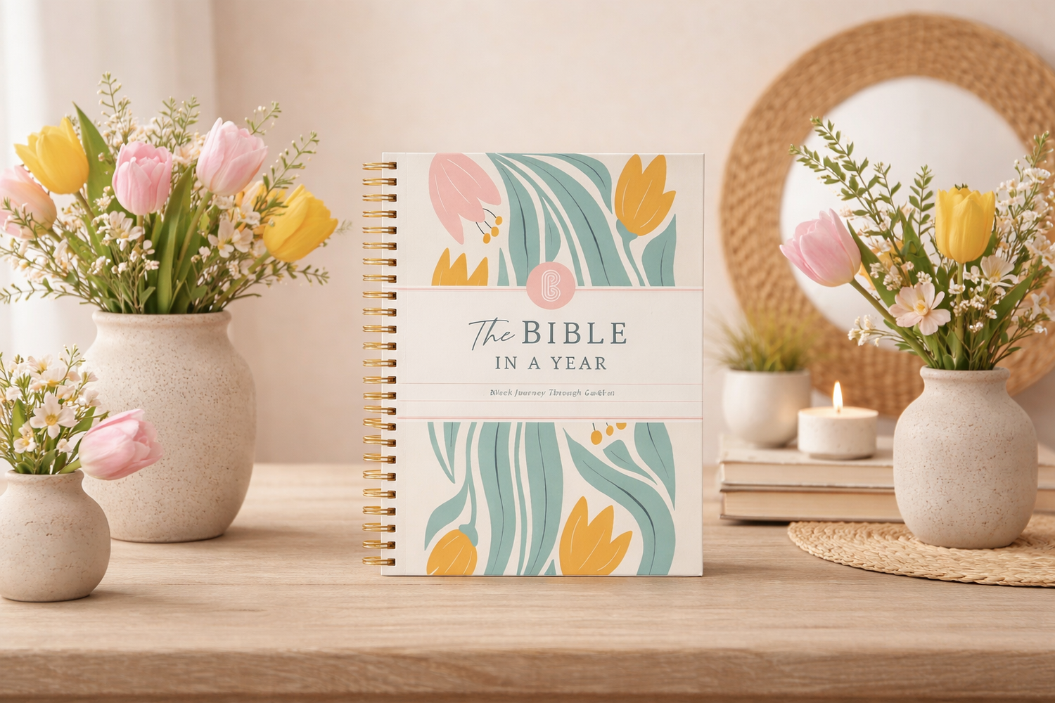 With a spiral-bound design that lays flat, wide margins for notes and prayers, and a clear daily structure, the Bible journal turns scripture from something overwhelming into something approachable.